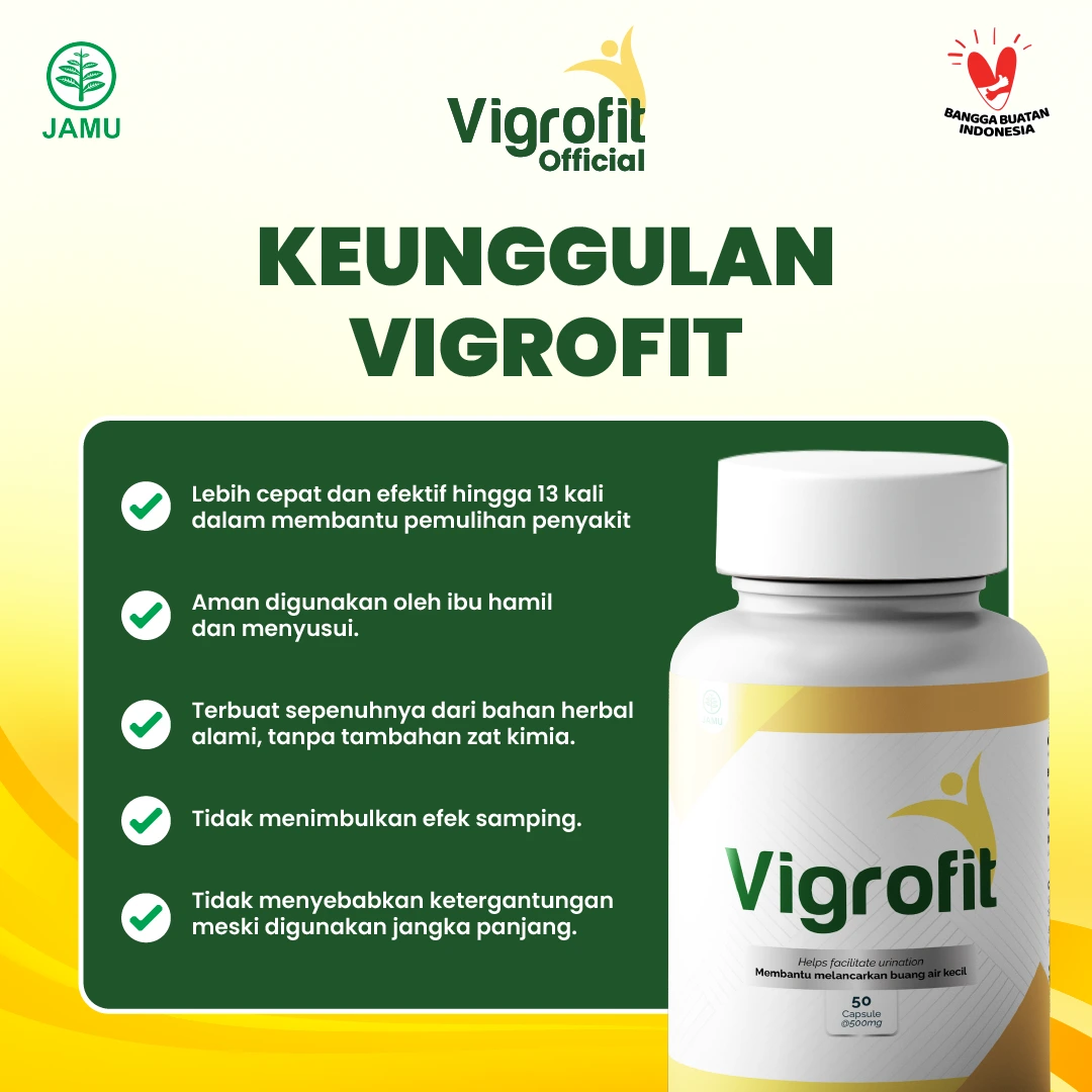 Vigrofit merupakan Obat Infeksi Saluran Kemih (Obat ISK) pertama yang terbuat dari bahan herbal tradisional. Vigrofit efektif untuk menyembuhkan Infeksi Saluran Kemih karena dibuat dengan bahan berkualitas dan Formula Obat yang 13x lebih ampuh untuk sembuhkan Infeksi Saluran Kemih (Obat ISK).